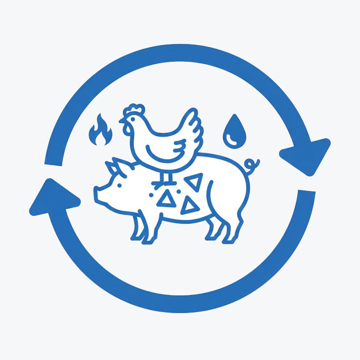 安全、專業地收集與處理畜禽屠宰過程中產生的下腳料。我們透過高溫高壓方式進行滅菌及油脂提取,確保生物安全,實現資源的循環再利用。